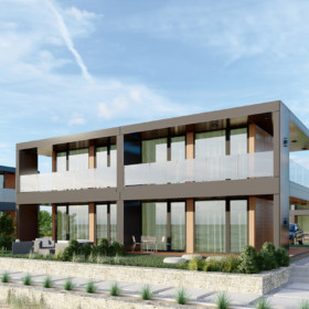 Elewację modułów stanowią płyty kompozytowe typu Bond oraz płyty HPL charakteryzujące się wysoką odpornością na warunki atmosferyczne. Elewacja montowana do konstrukcji modułów na pod-konstrukcji aluminiowej to jedno z modniej-szych rozwiązań, które cieszy się popularnością dzięki bezobsługowemu użytkowaniu.